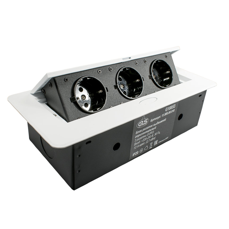 - Блок розеток выдвижной горизонт. 3 розетки , 250В 2,7кВт, 2м, белый (18.853)